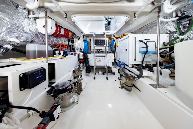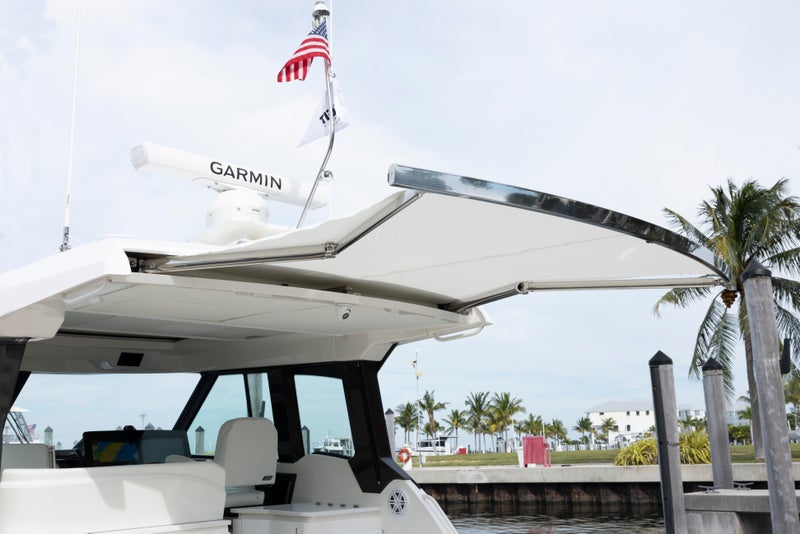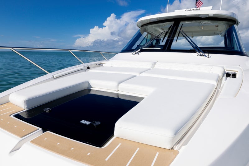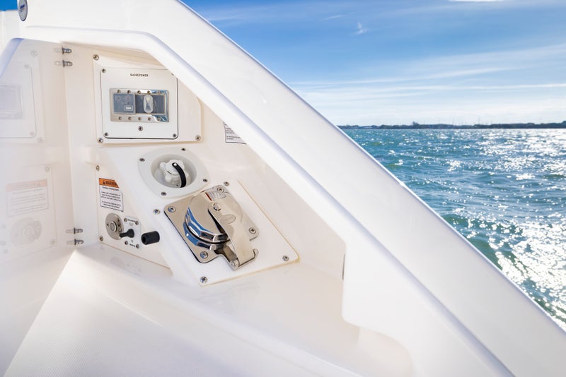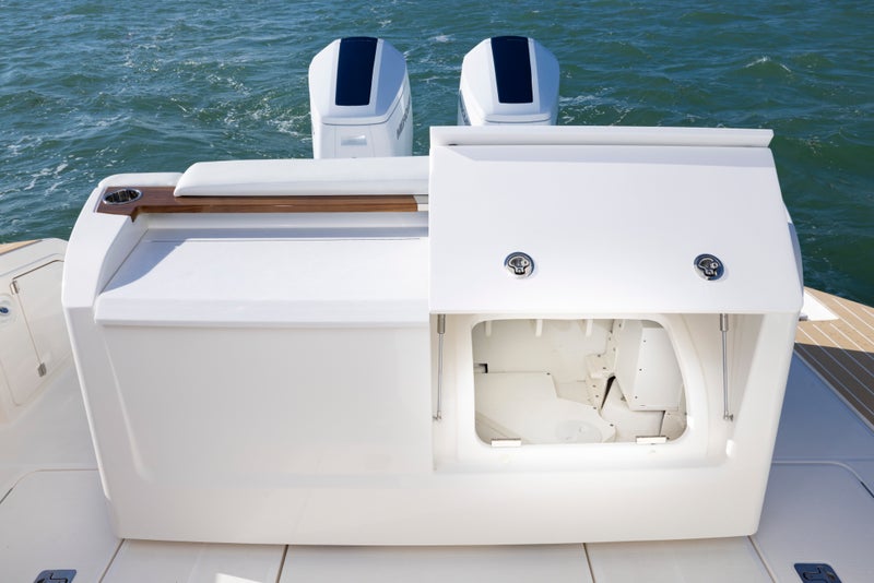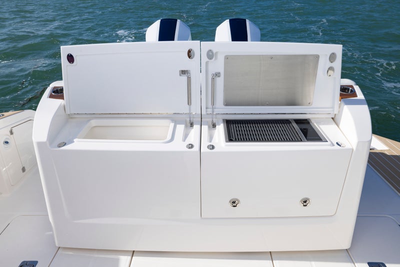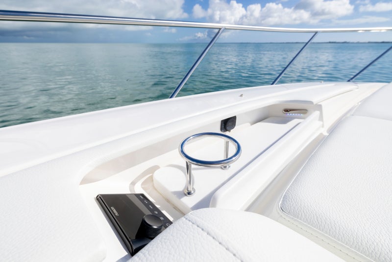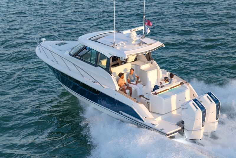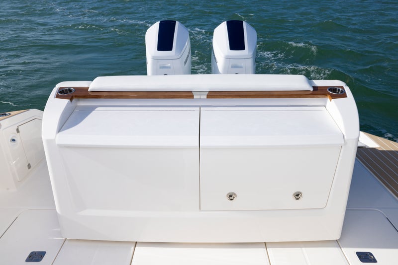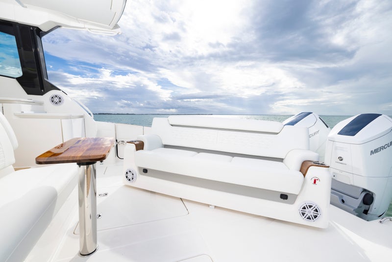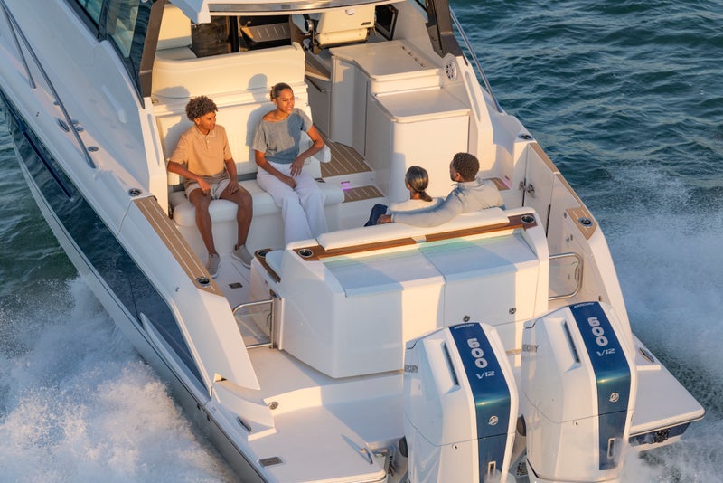 Twin Mercury 600 V12 Verado® outboard engines power the 39 LE with integrated Garmin® Marine navigation systems and joystick piloting. The helm features cutting-edge Garmin 9219 touchscreen display technology, seamlessly integrated with the EmpirBus digital switching system for intuitive and streamlined operation.