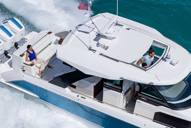 Designed with unwavering precision, enduring strength, and thoughtful comfort, the 46 LS is crafted to carry you not just farther, but fully into the moments you’ll remember long after returning to shore. Three unique aft cockpit modules allow owners to tailor their experience whether entertaining, seeking adventure, or embracing pure relaxation, enhanced by a portside terrace that opens the boat to the water. Sliding glass doors enclose the cockpit for protection from the elements, while below deck a serene retreat awaits, featuring a forward berth, mid-cabin stateroom, and well-appointed head. A thoughtfully designed mid-cockpit galley, paired with expanded prep space and pantry amenities below deck, create a stress-free environment for entertaining.